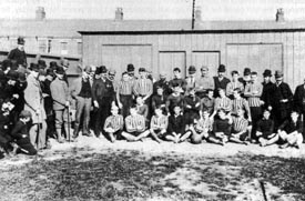 One week later Sunderland "A's" met Darlington reserves and whilst the 5 v 0 scoreline is nothing to write home about a reproduction of the team line up will begin to give an indication of the Sunderland squad for the season: Potts, Wishart, Jobling, Plumpton, Christie, Stonehouse, Douglas, Angus, Curran, Lord, W Peacock. Note that 2 Peacock brothers were on the books at the time. On the same day as the above the Sunderland first team travelled to South Bank and thrashed the home side 7 v 0. Brady, Rennie, Breconridge started the rout and the 600 spectators present watched on in amazement as their favourites were demolished. After 3 weeks on tour the Canadians arrived on Wearside having played competitively in both Ireland and Scotland. Their record so far read 5 wins, 3 defeats and 2 draws. It was a great honour that Sunderland were chosen as the first English opponents, yet more evidence of the growing stature of the club and the go ahead nature of the "Directors". The Canadians arrived on the Friday night and were put up at the Grand in Bridge Street, for the match that would take place on 22 September. It was a glorious day and the crowd numbered around 10,000. Sunderland emerged first and had some shooting practice with the ex Cambuslang full back Gourlay now in our ranks, interest was immense. The Canadians took the field in a dark blue "costume" with the white lettering "the dominion" emblazoned on their shirts. Sunderland attacked with the sun at their backs. It was soon evident that the visitors were a cut above anything Sunderland had so far faced this season and even though we were defeated 0 v 3 it was a great experience for Wearside. 29 September saw Sunderlands 2 teams win...the "A's" at Seaton Carew 12 v 1 and the first select gained a well deserved 2 v 1 triumph against Grimsby at Clee Park. The latter being regarded as "without doubt the most severe test so far this season". Sunderland were now starting to look quite formidable. 6 October and the first round of the English Cup saw Sunderland receive a bye. In order to keep the players active they entertained Sheffield Wednesday. The Wearsiders roared into a 5 minute lead, through Dickson. For all Wednesdays’ subsequent pressure they were finding it hard to penetrate Sunderlands resolute defence and it was no surprise when the Wearsiders broke away and scored a second. The Yorkshire team pulled one back just before the finish. Another victory...against another good team. On week later and the first team suffered, what was now, a rare defeat, 0 v 2, at the hands of old rivals Darlington at Feethams. The "A" team defeated St Paul’s 6 v 1. Middlesbrough "A" team were the next to suffer a heavy defeat by Sunderlands second string 6 v 1 whilst the first team played out a 2 v 2 draw against the Teesside teams first eleven. The draw for the next round of the English Cup, to be played on 27 October, saw Sunderland paired with Elswick Rangers, a home tie at Newcastle Road which was eagerly awaited. With 5,000 spectators present the 3rd round tie got underway with a strong wind blowing. The weather would play an important part in deciding the outcome. In what was a quite fantastic game Sunderland were victors by 5 v 3, their success due to goals from Brady (2), Breconridge (2) and Peacock.