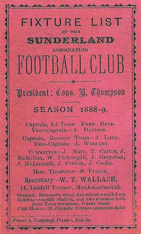 The 3 June saw the Sunderland AFC annual meeting, again held in Monkwearmouth Working Hall. To appreciate the interest now held in the club admittance was by ticket only. The President, Councillor Robert Thompson occupied the chair and whilst acknowledging the success of the season, undoubtedly the best since Sunderland had been formed, it had also been very arduous. For the first time Sunderland acknowledged the debt it owed to the community, and paid tribute to the clubs efforts to become part of the Town and enhance the moral and sporting welfare of its inhabitants. The Secretary Mr Wallace indicated that membership had increased nearly 4 fold from 400 to over 1500, including ladies and juniors. Sunderland had played 51 games that season, winning 34 and losing only 7. They had scored 171 goals, conceding only 79. The Newcastle Road ground was now regarded by the Football Association as one of the finest in the country, and had awarded the club the north v south game...a great honour. The second team had played 26 games, winning 19 and losing only 3. By any standards it had been an outstanding campaign. Robert Thompson was re-elected as club President, to loud cheering, and he reiterated his commitment to the Club. Other appointments were ratified as follows: Treasurer Tyzack Tom Watson had a good track record having made Newcastle West End into a good club and had been the prime instigator in the City club moving to St James Park. He had also assisted Newcastle East End, born in Heaton Terrace; he lived not far from where they played. His credentials were impressive. One of Watson’s main strengths lay in the fact that he believed in "scotch" footballers, who at that time were perhaps the finest on the planet, and along with Samuel Tyzack made many trips to Scotland in search of burgeoning young talent, usually top class internationals. In reshaping the team, close season, Watson retained the services of only 4 players. Kirtley, the stalwart goalkeeper, Dowk Oliver (fullback), Gibson and McLoughlin. He then proceeded to raid North of the Border, and acquired the services of 8 players: Johnny Campbell Renton In those days the Scottish clubs were less than impressed with the English raiding their outfits and it was a hazardous journey that both Tyzack and Watson paid. It is said that on one such trip both men had to be dressed in clerical outfits, lent by the Rev. McGonagle to ensure their safety. Threats of physical violence were common. Nevertheless all of the above were employed on the standard wage of the time 25 shillings, or just over £1. A day time "job" was also promised. Whilst the game in Scotland was more advanced it was amateur, and with money to spend Sunderland appeared an attractive proposition. With the guarantee of a job it made financial sense to many. Amongst Watson’s first 3 signings were Johnny Campbell, David Hannah and John Harvey, who all came to England from the Renton club. Campbell in particular would turn into a star on Wearside although all 3 were nearly enticed away from Wearside by an Everton club who offered them the earth. However they stayed and in addition Johnny Auld, Scotland’s national team centre half was bought from Third Lanark. As an example of the "riches on offer" he was given wages, a £170 signing on fee, a shoe business in Sunderland, fully fixtured, with the £50 per annum rental paid for by Sunderland AFC. One of the reasons why Sunderland had such wealth at their disposal was due to shipbuilding, which was at the heart of the club. Sunderland was of course once the biggest shipbuilding town in the world at towards the end of the 19th century the whole committee, including the trainer Joe Bell had connections. Sunderlands back 3 during this time were all English, although curiously Tom Porteous had been signed from Kilmarnock. He was the first player to be capped whilst at Sunderland. His fellow back Oliver played for North against the South. Dowk Oliver, who came from Southwick, was probably the first nationally known footballer. He started the season at full back with Sunderland and in time would go on to link up with the England squad. With the advent of League football only one season away it is fair to look back on the beginnings of Sunderland AFC and indicate that they ere probably the pioneers of Association football outside of both Lancashire and the Midlands, in England. What surprised many people was that at the end of the 1888/89 season Sunderland had an application to join the Football League rejected. That wouldn’t last for long. In truth Sunderland were now too powerful, their playing strength of such repute that the English game needed them. They would play only one more season outside the ranks of the elite. |