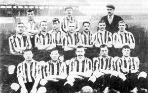 25 December and Maine Road witnessed a closely fought encounter. ! v 1 the final outcome with R Hogg on target this time for the red and whites. Boxing Day and 18,000 spectators at the Baseball Ground witnessed another draw. The "A" team were also in full flow and Xmas day saw a 1 v 1 tie with Newcastle United. Boxing Day and Sunderlands 3rd team were defeated 1 v 3 by Sunderland Royal Rovers, in the final of the Monkwearmouth Charity Cup. 29 December saw miller injured and so Alf common took his place. Common would go onto feature in the very first 4 figure transfer fee, but for just now he was a "bit player" in the Sunderland AFC playing equation. Over 20,000 witnessed the 2 v 1 New Years Day Roker Park defeat of Derby County. 2 successive draws, the 5th in 6th league games ended with a 7 v 2 thrashing of Wolves at Roker Park, the last 4 goals from Millar, Hogg, Livingstone and Millar again came in a 20 minute "blitzkrieg". A tough trip to Villa Park ended respectably with a 2 v 2 draw, before our "English" FA cup hoodoo continued, this time knocked out by Sheffield United on Wearside. This was very disappointing although the 27,000 attendance did boost the Roker coffers by £850. Typically Sunderland then played The Blades in the league, at the same Roker Park venue and triumphed 3 v 0. Our continued failure in the FA cup was quite frankly baffling. 23 February brought about the game that probably in hindsight cost Sunderland the title. Liverpool arrived on Wearside, having suffered a 1 v 2 reverse against The Lads at Anfield earlier in the season. They knew that a similar scoreline and it was curtains. Unfortunately Salterwaite scored a beauty for the Scousers, in the second half, and the Roker hordes went home bitterly disappointed. Sunderland suffered 2 league reverses in the last 9 games, and even though they rattled up one or two impressive scores, for example 5 v 1 against Bolton Wanderers it was too little too late. The burgeoning rivalry between Sunderland and Newcastle United was emphasised on the Good Friday fixture scheduled for 5 April 1901. It was estimated that 70,000 people descended on St James Park, the stadium at the time held barely 20,000. The ensuing chaos resulted in thousands of people spilling onto the pitch, the stands structure was under severe pressure and there was even the possibility that it may collapse. By now everyone knew that play was impossible and when it became apparent that the two teams would not take the field all hell broke loose. The police were charged by the fans, who had to use baton to curb the civil disorder. An unlucky fan, who had climbed onto the roof for a better vantage unfortunately, fell off, and it wasn’t until 2 hours after the scheduled 5 o'clock kick off that the ground was cleared. The game was rescheduled for 24 April and would result in a 2 v 0 Sunderland victory. There was of course tight security, with only 17,000 or so allowed in this time. The police presence was huge with local constabulary positioned every few yards round the pitch. The kick off was set at 5.45pm. Many men from the Elswick Ordnance Works had taken time off to attend, and couldn’t get in. And so another league campaign came to an end and in truth it had been good. Second place, so nearly first... The season finished with the usual round of friendlies: 15 April Lincoln City Away 0 v 0 17 June 1901 saw thaw Sunderland AFC annual general meeting, once again held at the Grand Hotel. The directors submitted the annual statement of accounts and a most satisfactory outcome it had been. Rather than a loss, as reported the previous year, a surplus of income over expenditure had amounted to £987. Significantly 2 matches were signalled out for attention. Both the fixtures against Newcastle United and Aston Villa had raised 4 figure sums. The former raising record receipts of £1056. The improved league performance was again mentioned with Liverpool only taking the title on the last day of the season with a win against West Bromwich Albion. The "A" team were runners up in the Northern alliance, were Durham cup winners and also won the Tyneside Alliance Cup. Total attendance for the season totalled 262,338 as against 180,748 for the previous campaign. Once more annual Olympic Games were held, but due to the financial risk it was decided against this contest for the forthcoming season. The death knell for this event it appears. The company Articles once more provided for elections, not only for Board etc. members but also for the Football clubs Auditors Messrs Nelson & Brown. |