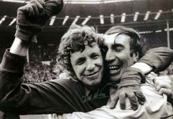 It was now believable that Sunderland could win. Leeds built-up attack after attack, but Sunderland’s rear four were commanding. Every clearance was cheered. For some the tension was unbearable and they left their places and paced about under the stands, at home some people had to leave their television sets. Everyone except the unfortunate folk from Leeds wanted the final whistle to blow and when it did there was one of the greatest roars ever at Wembley. Bob Stokoe, his short white mackintosh billowing, raced across to Montgomery. Danny Blanchflower wrote that the game was the most emotional he had known. The Sunday Express said Wembley had never seen such ecstasy. The nation enthused. Back in Sunderland many people ran out; there was impromptu dancing; cars appeared, drivers just sounding their horns. The centre of the town became impassable. That night was just about the most joyous the old town had known. Don Revie, who took defeat well, said that Montgomery's save was the best he had seen, and that Sunderland’s strength and enthusiasm in the first half had unsettled his side. Leeds United: Harvey, Reaney, Cherry, Bremner, Madeley, Hunter, Lorimer, Clarke, Jones, Giles, Gray (Yorath) Sunderland: Montgomery, Malone, Guthrie, Horswill, Pitt, Halom, Hughes, Kerr, Watson, Porterfield, Tueart Referee: Ken Burns, Stourbridge __________________________ Finale